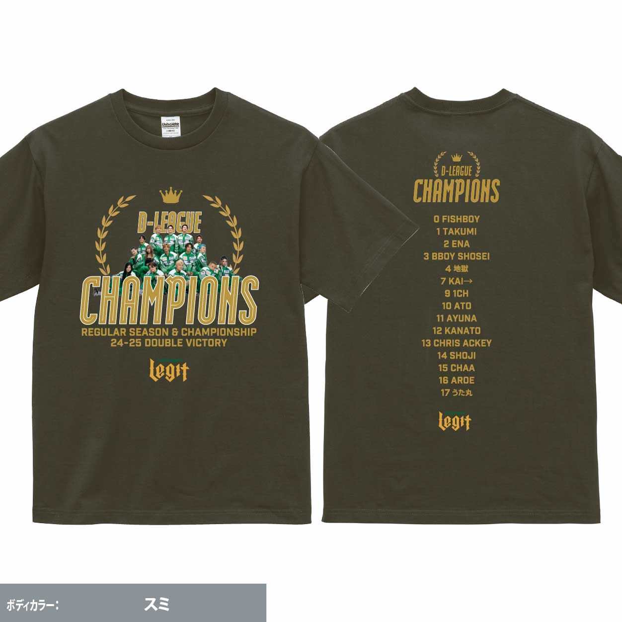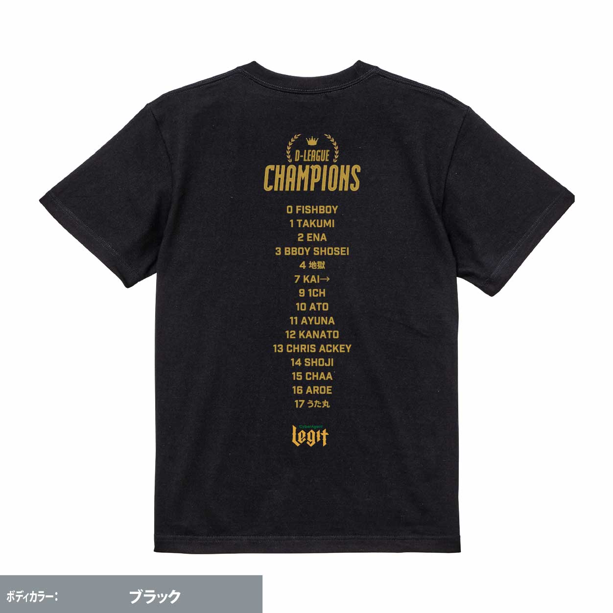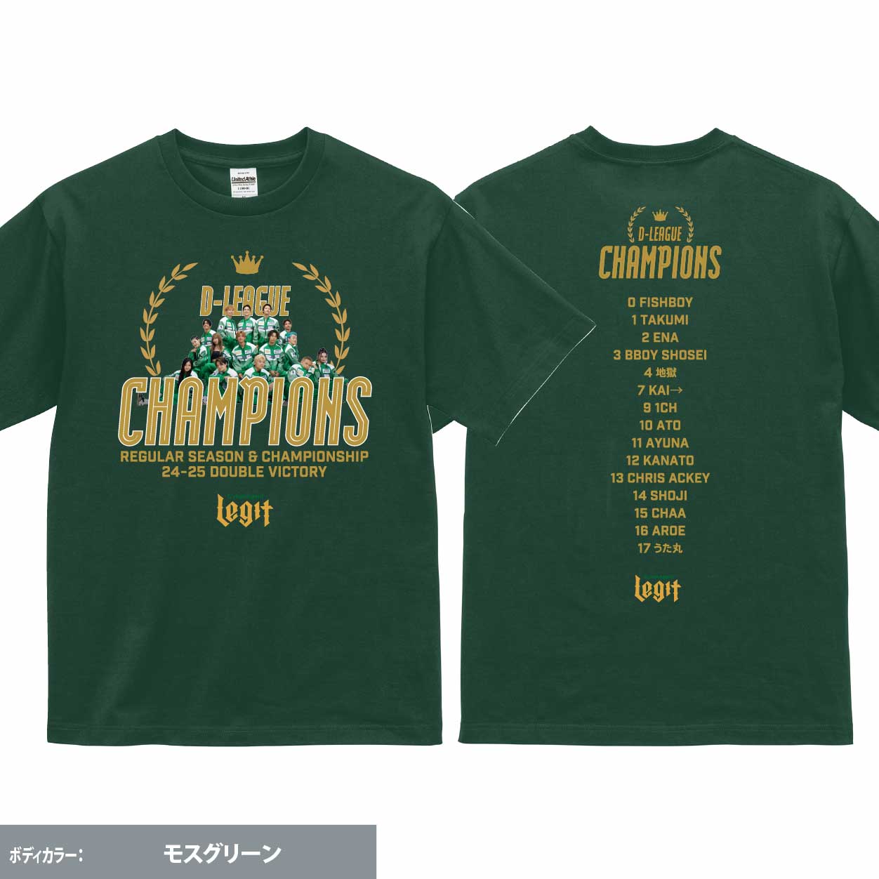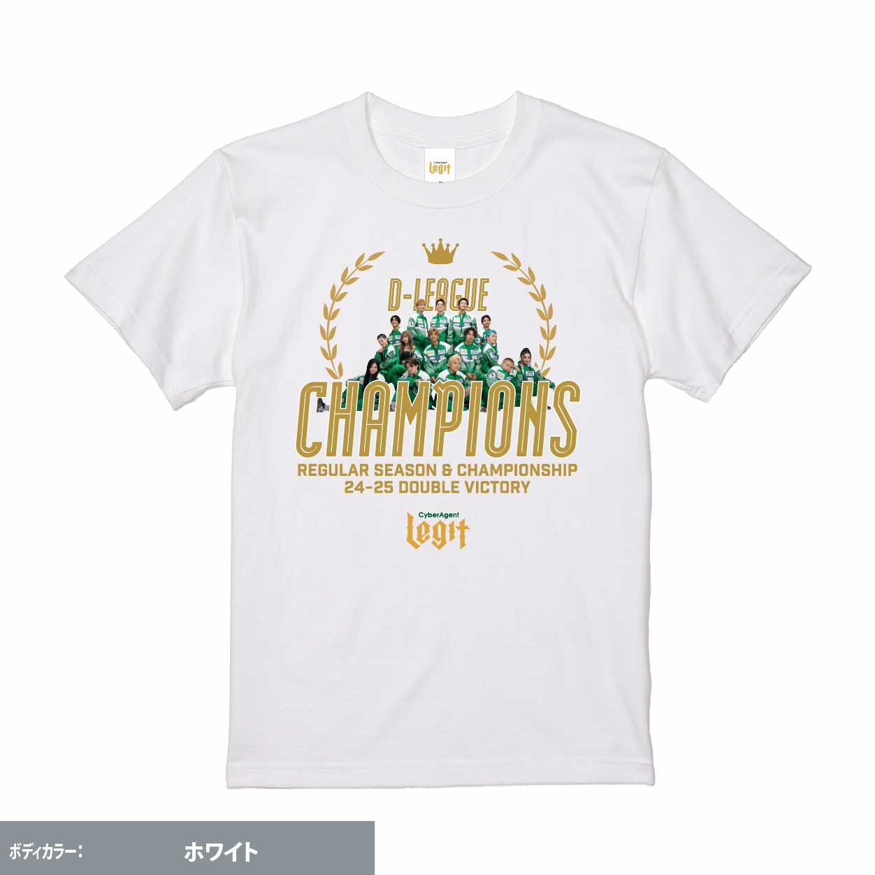 24-25Season完全優勝記念Tシャツが登場! プロダンスチームCyberAgent Legitは、2025年6月19日に開催された「第一生命 D.LEAGUE 24-25 CHAMPIONSHIP」で優勝。 先日のREGULAR SEASON優勝とあわせてD.LEAGUE史上初の完全優勝を達成しました。 完全優勝を果たすことができたことは、日頃より熱い応援で支えていただいているファンの皆さまをはじめとした、CyberAgent Legitを取り巻く全ての皆さまのおかげです。改めて心より感謝を申し上げます。 どんなに挫折をしても、チームで支え合い、常に頂点を目指し続けたLegitメンバー、そして共に支え戦ってくださったレジポッセの皆様と勝利の記念として制作致しました! <サイズ> S・M・L・XL