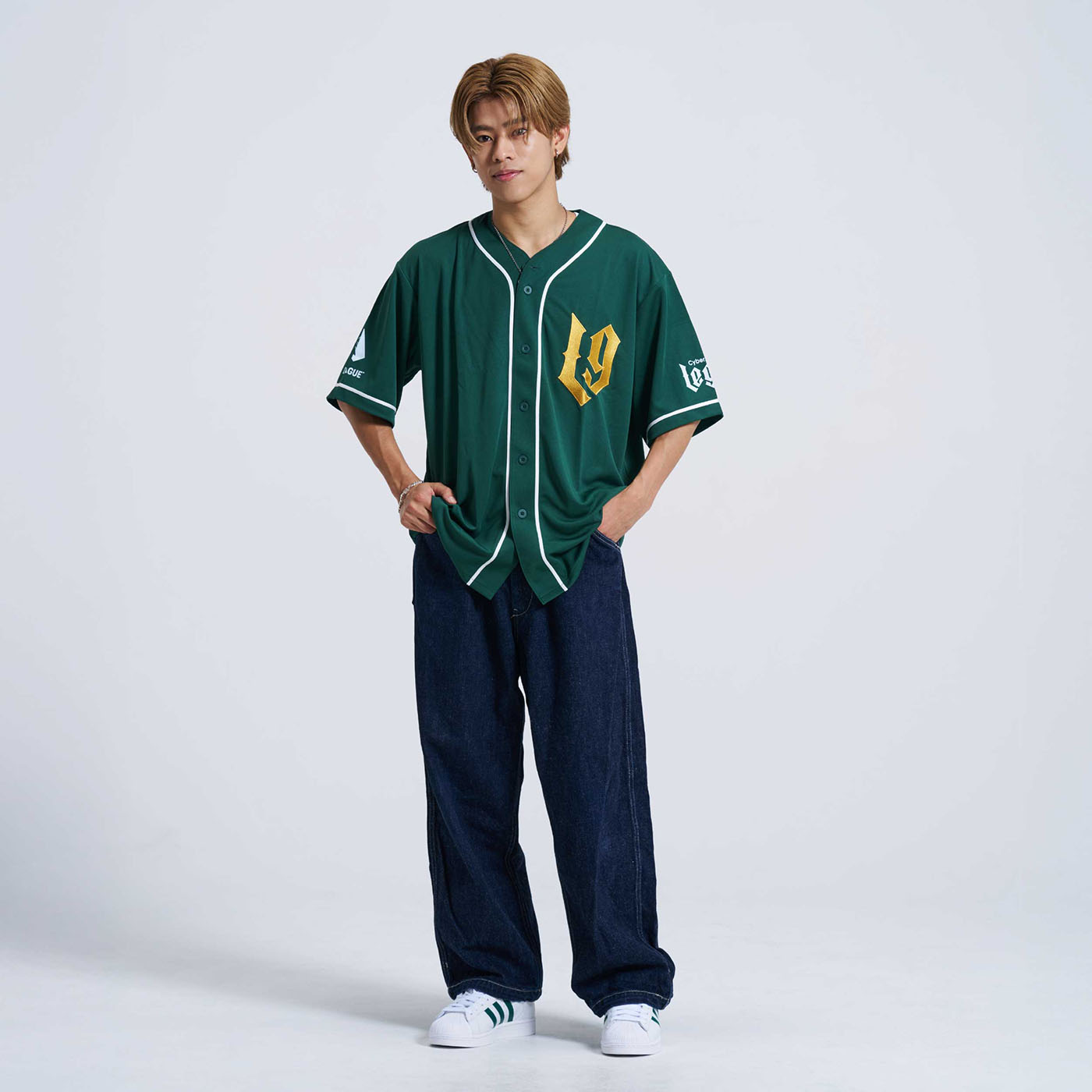 CyberAgent Legit初のレプリカユニフォームシャツが登場! 選手と同じデザインのユニフォームシャツを着て、一緒に盛り上がりましょう! 数量限定で販売中です。是非GETしてください! ※左胸Legitロゴ部分は刺繍ではなく、プリントデザインになります。 ※モデル着用サイズ ena:Mサイズ TAKUMI:XLサイズ 1ch:XXLサイズ